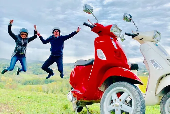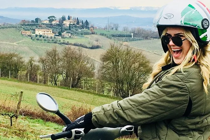 Your day includes riding your own Vespa moped with helmet provided, guidance from a licensed local guide and driver throughout Tuscany’s countryside, stops in one of its most charming medieval towns (with time for world-champion gelato if you want), plus all fees and taxes covered—and wraps up with a typical Tuscan light lunch paired with local Chianti wines before returning to Florence.