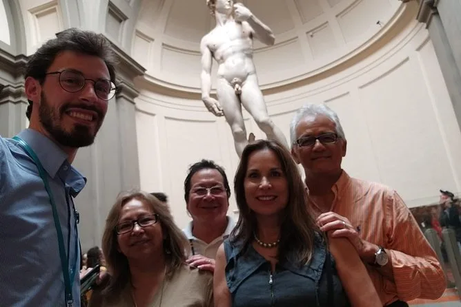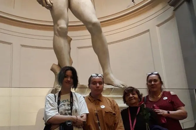 Afterwards, we followed Chiara through Florence’s streets (she walks fast but somehow never loses you), heading for the Accademia Gallery. The line outside was wild, but our group slipped right in thanks to those priority tickets. Seeing Michelangelo’s David up close is… honestly kind of surreal. It’s taller than you expect—like he might just step off that pedestal if you blinked. I remember staring at his hands, all those veins and tendons carved out of marble. Someone behind me whispered “He looks worried,” and I couldn’t stop thinking about that for the rest of the day.