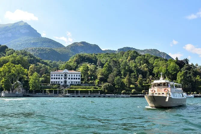 Your day includes transport by air-conditioned vehicle from Milan, guided walking tour of Como town, a private group boat ride across Lake Como (from Tremezzina), visits to Villa Carlotta and Villa del Balbianello, plus free time in Bellagio for lunch and shopping before heading back together.
