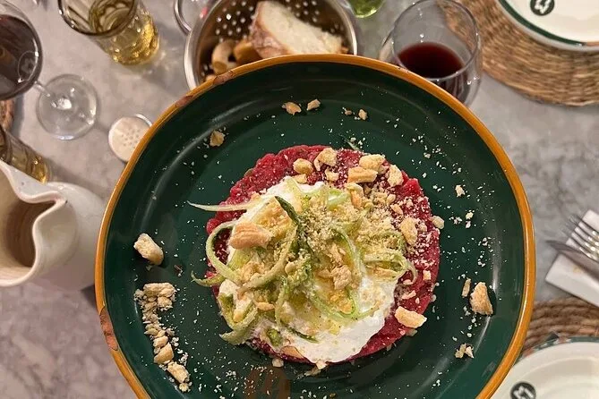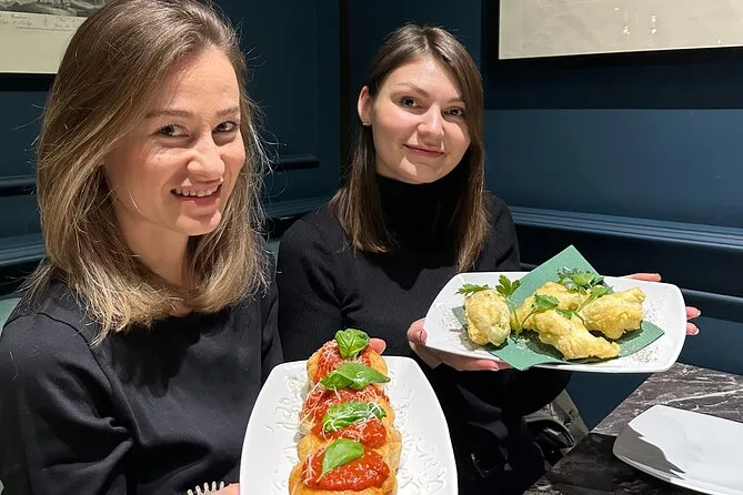 The tour includes more than 7 tastings featuring dishes like arancina from Palermo, risotto with gorgonzola and pear, panzerotto Pugliese, fruit tartlet or pasticciotto, plus wine and coffee.