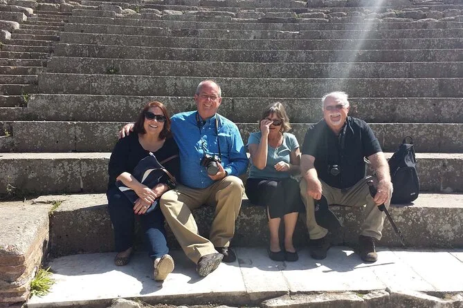 The forum is wide open, with grass growing where market stalls once stood. You can peek into old restaurants and wine warehouses—the smell of damp earth is everywhere. Marco shared stories about daily life: laundry workers scrubbing clothes in huge stone basins, bakers hauling fresh bread out of brick ovens. There’s about 2 km of walking but plenty of shady spots to rest and take it all in. If you’re coming from Rome, the train ride is simple and quick—just remember comfy shoes; those cobbles are no joke.
