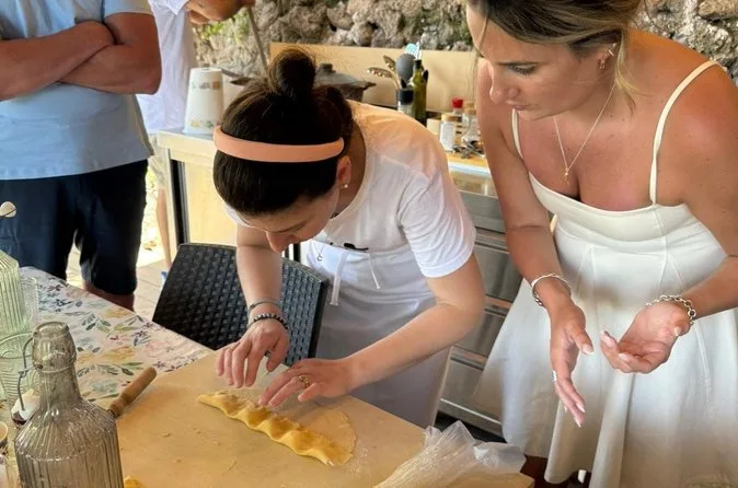 You’ll prepare a traditional starter (like stuffed eggplant or pepper), two types of homemade pasta with seasonal sauces, and a classic dessert such as Italian trifle or citrus pudding.