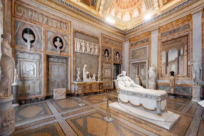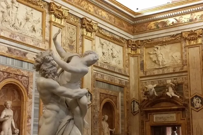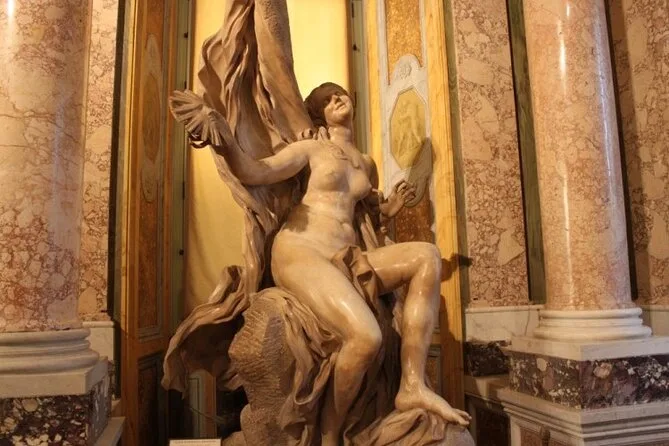Your day includes pre-reserved entrance tickets to the Galleria Borghese so you skip any lines, a guided small-group tour covering masterpieces by Bernini (like Apollo & Daphne), Caravaggio’s Head of Goliath and Boy with a Basket of Fruit, Canova’s Paolina Bonaparte, Titian’s Sacred and Profane Love plus ancient sculptures and Raphael paintings — then time for a self-guided stroll through Villa Borghese gardens afterwards.