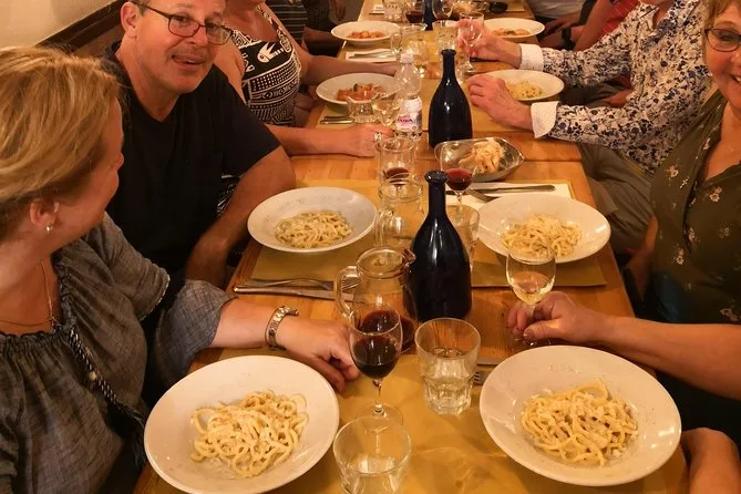 Your day includes 3.5 hours of guided walking through Rome’s historic neighborhoods with an English-speaking local foodie guide (other languages on request), 15 generous tastings across five venues—including pasta dishes and fried specialties—VIP entrance at select restaurants, quality wine pairings at different stops, plus a free restaurant guidebook and cookbook to take home.