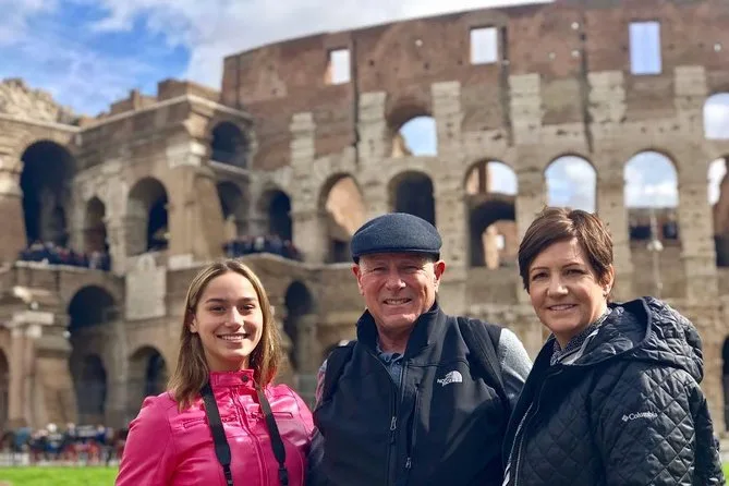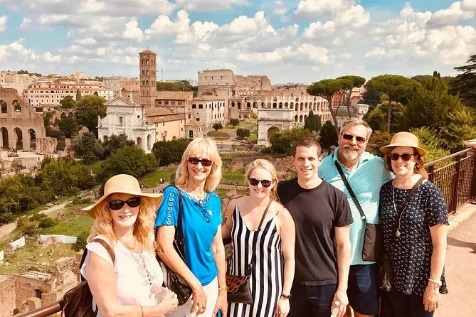 The tour covers the Colosseum (with optional arena floor), Roman Forum, and Palatine Hill.