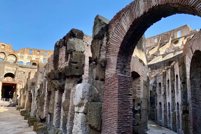 Your day includes dedicated entrance tickets for either the Colosseum Arena floor or Underground section (depending on your booking), a live expert guide throughout all sites, sterilized earphones so you can hear clearly even in crowds, plus guided walks through both the Roman Forum and Palatine Hill before heading back out into modern Rome.