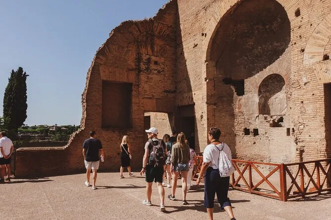 You visit the Colosseum (including Arena Floor access with certain options), Palatine Hill, and Roman Forum.