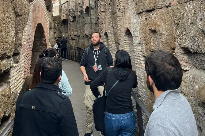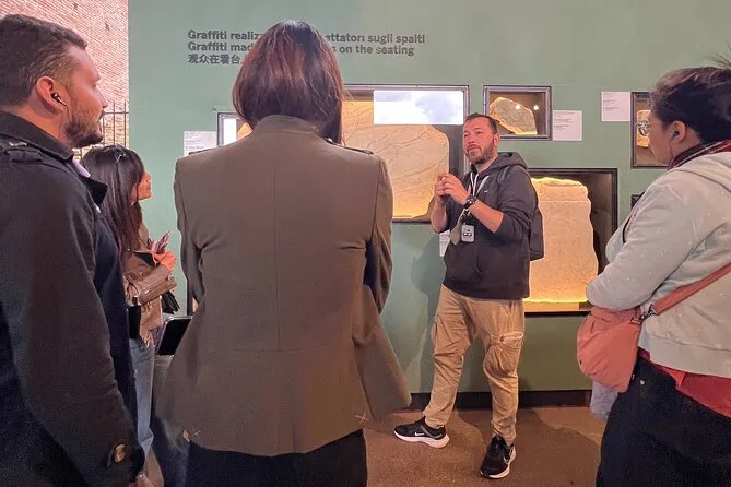 The underground part felt strangely intimate — just seven of us and Marco’s low voice bouncing off ancient bricks. At one point he handed me a tiny flashlight so I could peek into a side tunnel (I dropped it, of course). There was this old wooden lift mechanism he showed us; you could almost hear how it would’ve rattled when they hoisted up cages. Someone asked if gladiators got nervous down here. Marco just smiled and shrugged: “Probably more than we can imagine.”