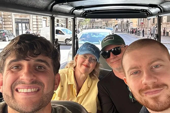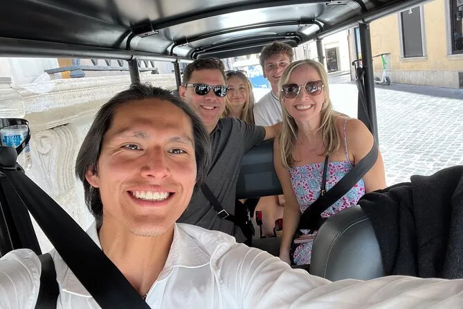 You’ll ride through Rome’s heart in a comfy golf cart, stopping at legends like the Colosseum and Pantheon while your local guide shares stories you won’t find in guidebooks. Expect coffee-scented air near Via Giulia, quick strolls through ancient ruins, and plenty of laughs along the way—it’s Rome seen up close, without the crowds or sore feet.
