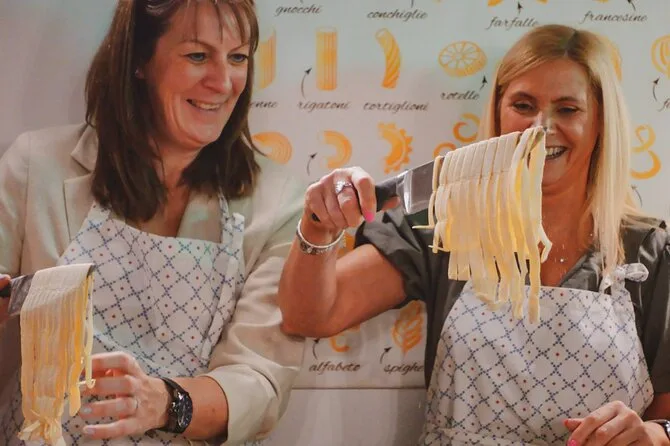 Your afternoon includes hands-on pasta making guided by a local expert chef near the Colosseum, three different spritz cocktails mixed by a professional mixologist as you cook, unlimited water or soft drinks throughout the class, plus digital recipes to take home so you can try it all again later.