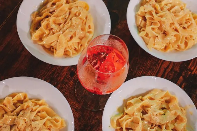 You’ll roll fresh pasta by hand in a lively Roman kitchen just steps from the Colosseum, learn to mix three classic Italian spritz cocktails with a pro mixologist, and share laughs (and maybe some flour disasters) with fellow travelers. Expect local flavors, real recipes to take home, and that warm buzz only Rome can give you.