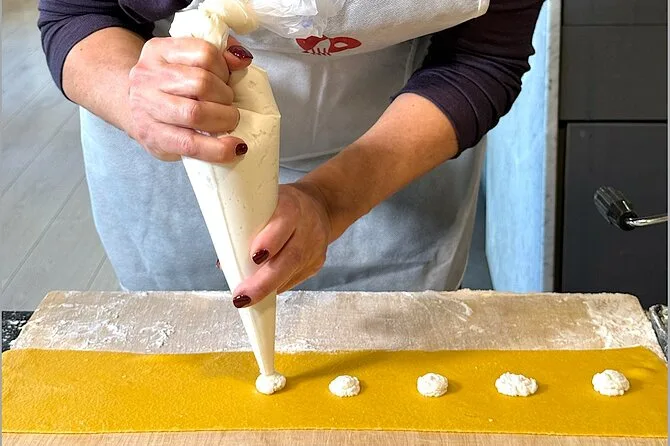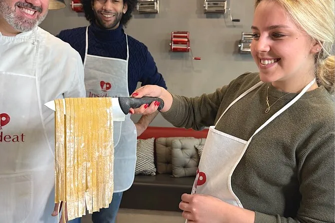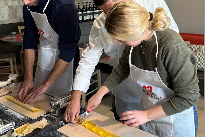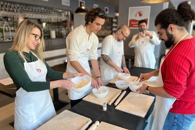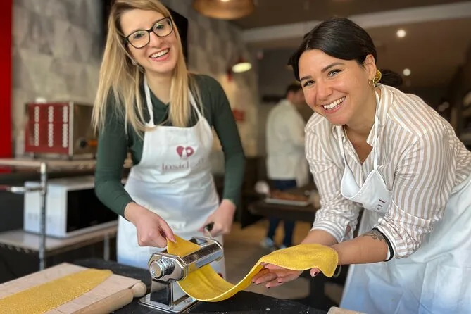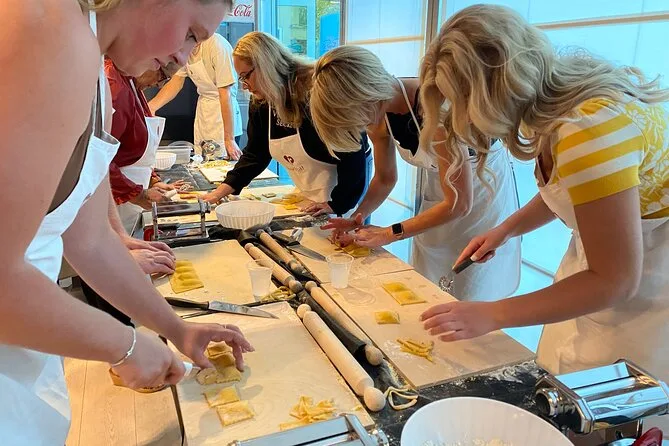 Your day includes a small-group hands-on cooking class in Rome led by an English-speaking chef; all ingredients; your own workstation with apron and tools; welcome aperitif (Spritz), homemade cheese & pepper chips; bruschetta; fresh fettuccine and ravioli prepared by you; personalized tiramisù; plus wine or soft drinks and water to enjoy with your meal on site after class.