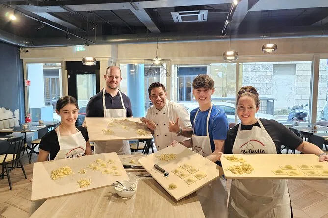 Your afternoon includes all ingredients and equipment, hands-on guidance from a professional chef instructor in central Rome, use of apron and utensils during class, plus a shared meal where you’ll enjoy your handmade fettuccine, ravioli, and tiramisu together with fellow participants before heading out into the city again.