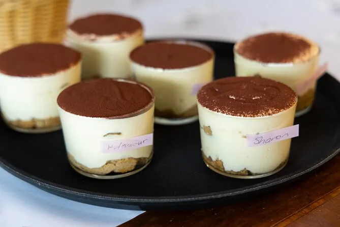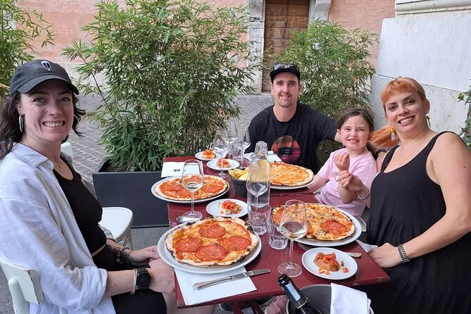 Your evening includes all fresh ingredients and equipment for both pizza and tiramisu making, step-by-step guidance from a local chef in central Rome near Piazza Navona, your choice of wine or soft drink during dinner along with water throughout, plus your own homemade pizza followed by freshly prepared tiramisu — finished off with either limoncello or hot coffee before heading out into the city again.