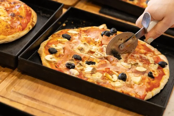We got right into kneading, which is harder than it looks on YouTube. My hands stuck to the dough at first — Marco showed me how to flick my wrists so it didn’t glue itself to my fingers. There were only ten of us, so he actually came around and joked with everyone (he called my lopsided circle ‘modern art’). Picking toppings was its own adventure; I went classic but someone else piled on everything. The oven heat made the whole place feel cozy even though it was raining out. When our pizzas came out bubbling and golden, we all kind of stared at them for a second before digging in. I swear mine tasted better because I’d wrestled with it.