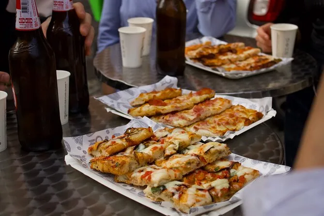 You’ll try cold cheeses and meats (like pecorino and porchetta), suppli rice balls, pizza al taglio with beer, Roman pasta dishes with wine, and Italian gelato.