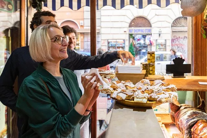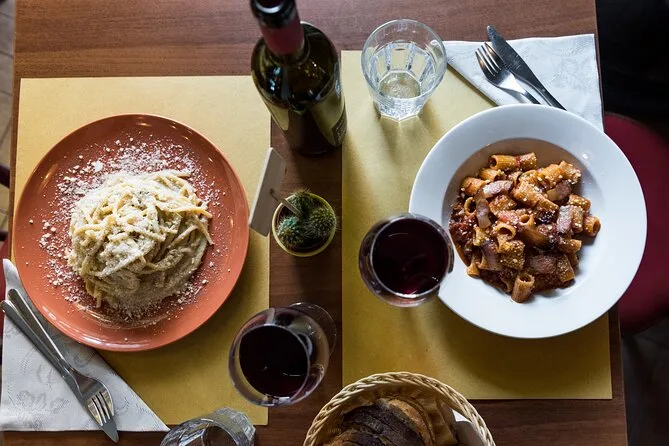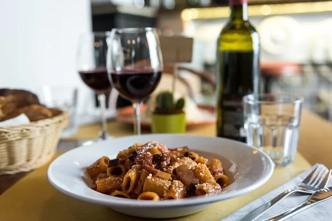Your evening includes all tastings—classic Roman pasta dishes, pizza bianca with porchetta, cookies from a family bakery—plus DOC prosecco, beer and wine pairings at each stop. You’ll skip restaurant lines and explore an ancient wine cellar alongside your local English-speaking guide before ending with artisan gelato under Trastevere’s lights.