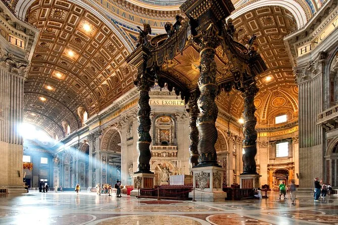 After that we walked over to St. Peter’s Basilica — you can feel the shift as you leave the museums and step into that vast space. Sunlight pouring through high windows, dust motes floating everywhere. Marta steered us toward Michelangelo’s Pietà; I didn’t expect to feel much but standing there… it’s different in person. The marble looks soft somehow. There was this older couple next to us who crossed themselves and stood quietly for ages — made me think about all the people who’ve come here before. We finished near Bernini’s Baldacchino; by then my feet were tired but I still wanted to linger.