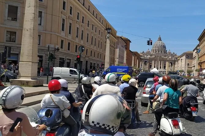 You’ll ride through Rome’s heart by Vespa with a local guide, stopping at landmarks like the Colosseum and Pantheon, slipping into hidden alleys for coffee breaks, and soaking up real city life. Includes pickup anywhere central, flexible stops for photos or espresso, all gear provided—plus those little moments that stick with you long after.