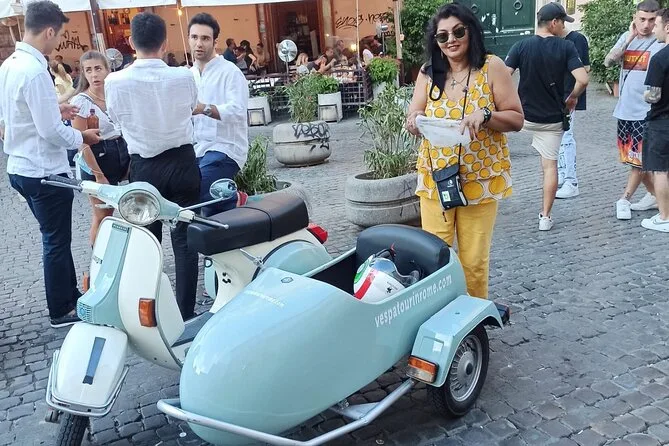 The first thing I noticed was the low rumble of the Vespa engine echoing off the stones near Piazza Venezia — not loud, but almost like a purr under your seat. Our guide, Marco, handed me a helmet and grinned as if he knew some secret shortcut through Rome’s chaos. My friend climbed into the sidecar (she called dibs), and I squeezed behind Marco, knees pressed up against the seat. The city felt different at night — cooler air, headlights bouncing off ancient columns, and that faint smell of orange blossoms drifting somewhere between traffic lights.