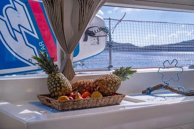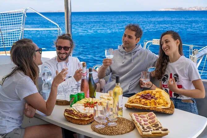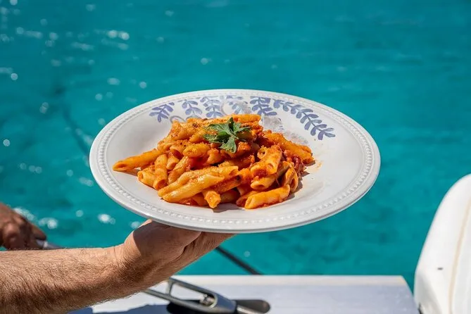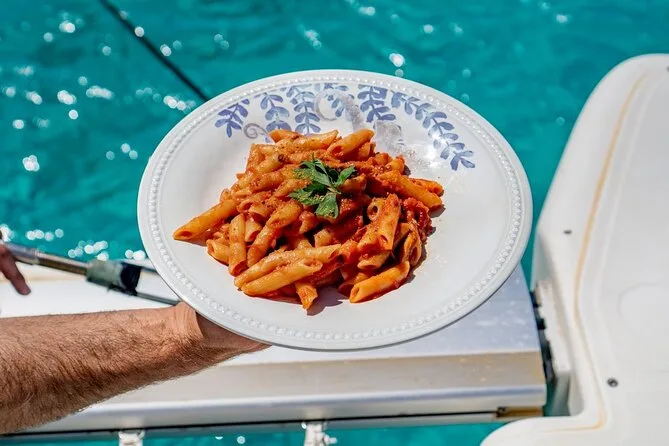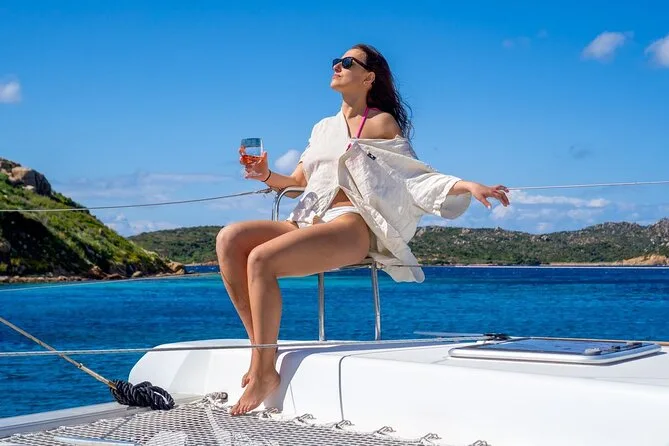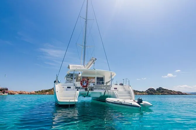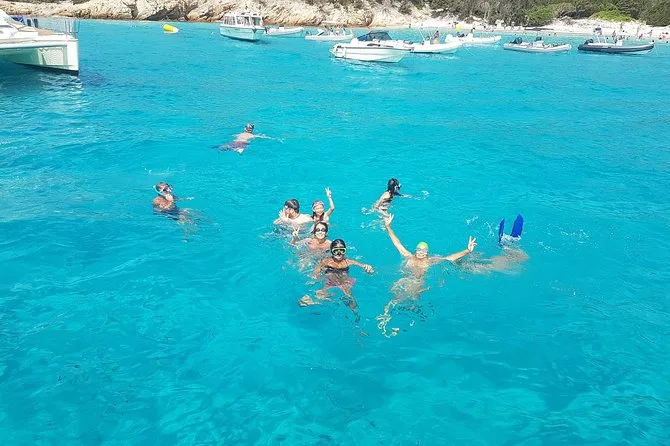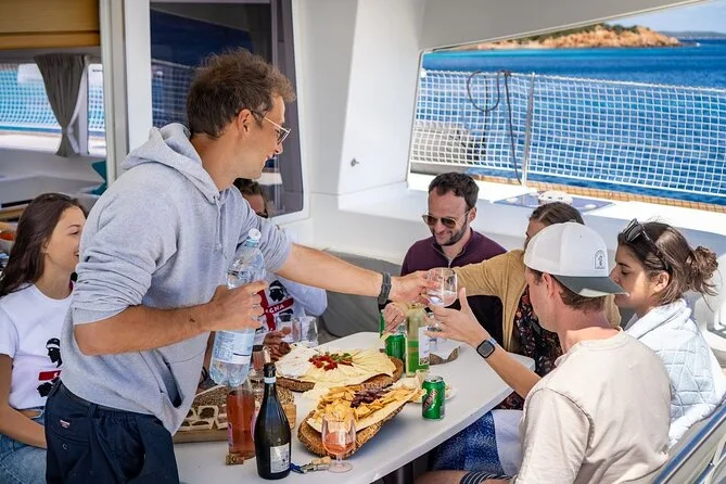 Your day includes departure from Porto Rafael or Palau aboard a luxury catamaran with all snorkeling gear provided. You’ll enjoy a typical Sardinian aperitif followed by lunch cooked fresh onboard (fish-based or vegetarian if you ask ahead), plus Vermentino di Gallura white wine, beer, soft drinks, fruit and desserts—and a taste of local liqueur before heading back in the late afternoon.