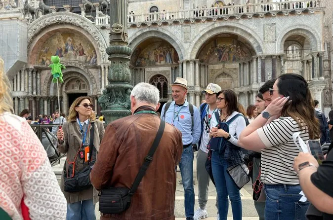 The guided tour typically lasts about one hour inside St. Mark's Basilica, plus extra time if you choose the terrace or VR options.
