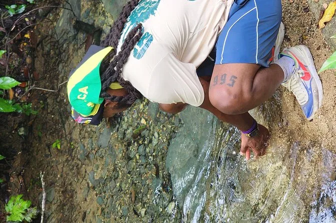 We kept going until the trees thickened into real jungle. There were birds making wild noises overhead — not the polite kind you hear in city parks. At one point we crossed a little stream; I dipped my fingers in because Devon said it was cold, and wow, he wasn’t kidding. We took a break at the riverside where everyone just sat around for a bit, boots off, feet in the water if you wanted (I did). Someone asked about Usain Bolt’s old house nearby — Devon pointed it out up on a hill, nothing fancy but he sounded proud talking about Jamaica’s “fastest son.”