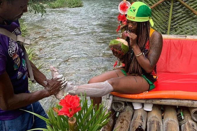 Montego Bay river rafting slow drift limestone foot rubs village chats