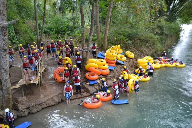 The tubing portion lasts about 45 minutes; including transport and beach club time, expect several hours total.
