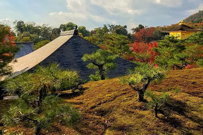 You visit Kinkakuji (Golden Pavilion), Daitokuji Temple Complex including Koto-in and Zuiho-in, Imamiyajinja, and Kitanotenmangu Temple.
