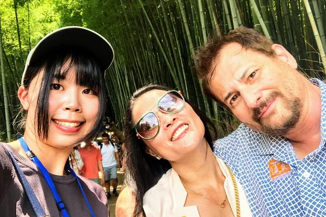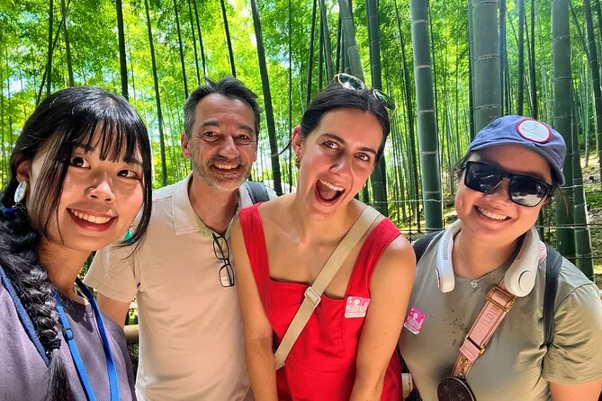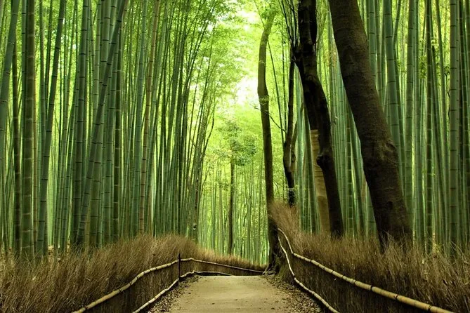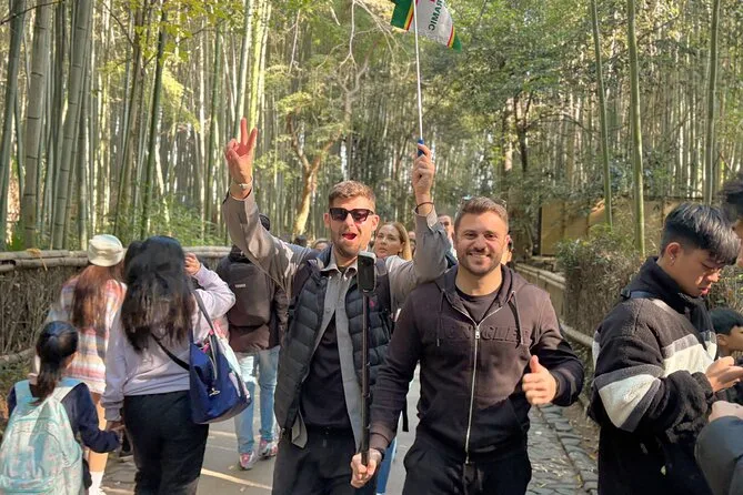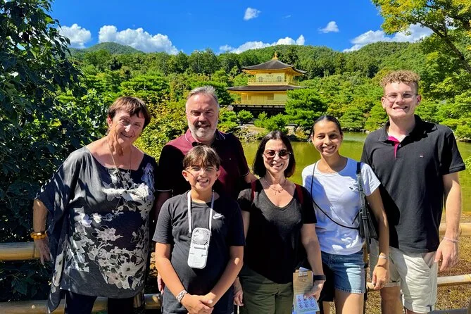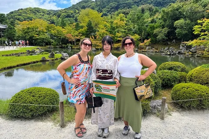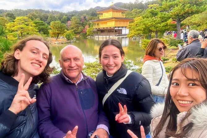 You visit Kiyomizu-dera Temple, Sanjusangen-do Temple, Arashiyama Park and Bamboo Forest, Tenryu-ji Temple, Kinkaku-ji (Golden Pavilion), Nijo Castle (from outside), and Fushimi Inari Shrine.