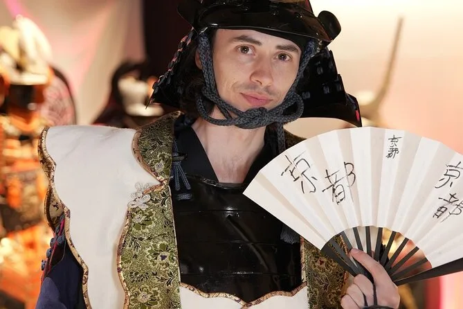 Your day includes expert fitting into authentic samurai armor tailored to your size, a guided calligraphy session where you’ll create your own war fan (yours to keep), premium G7 Summit-grade matcha with Japanese sweets served among historical armor displays, an outdoor group march along Kyoto’s Sanjo Riverbank with photo opportunities by the Kamo River—all supported by friendly English-speaking staff and secure lockers for valuables.