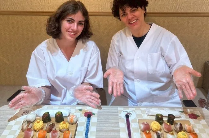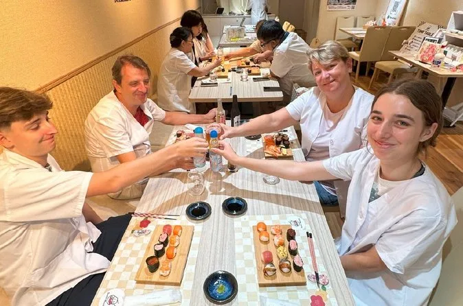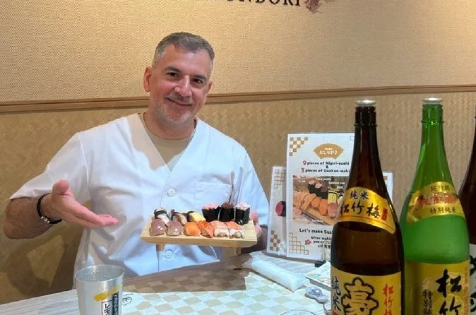 Your experience covers all fresh sushi ingredients for your chosen course (including vegetarian options if requested), use of aprons and tools during class, guidance from friendly English-speaking staff in central Namba near Dotonbori, plus your full meal of handmade sushi with Japanese sake tasting before you head out again — same-day bookings welcome too.
