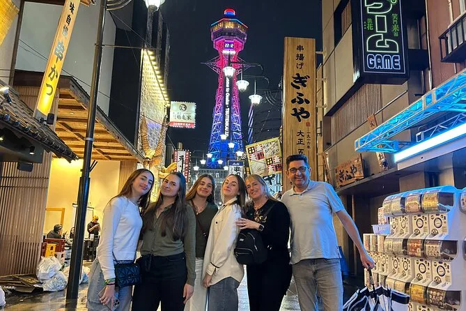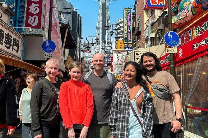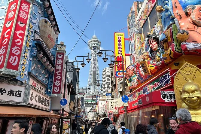 The itinerary includes seeing Tsutenkaku Tower from outside while exploring Shinsekai district; entry is not specified as included.