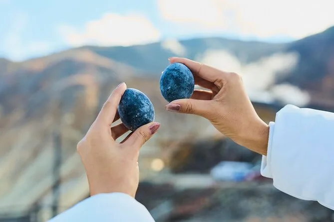 Owakudani is an active volcanic valley known for its sulfur vents and black eggs boiled in geothermal springs.