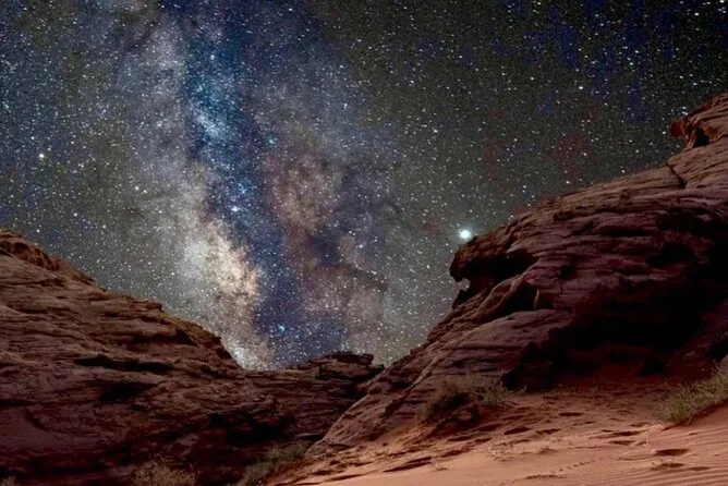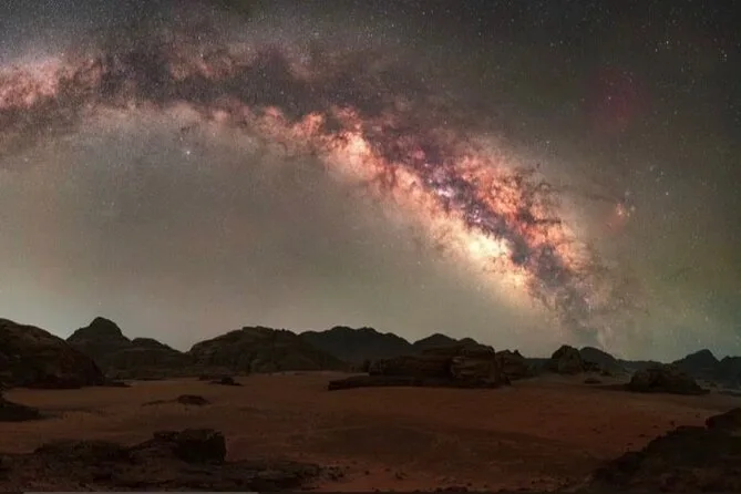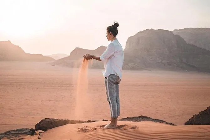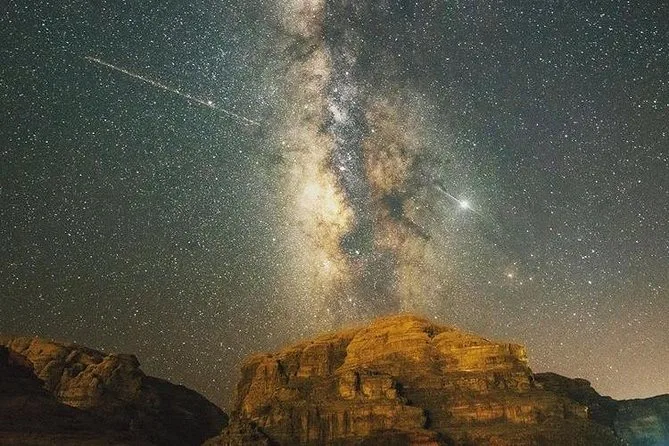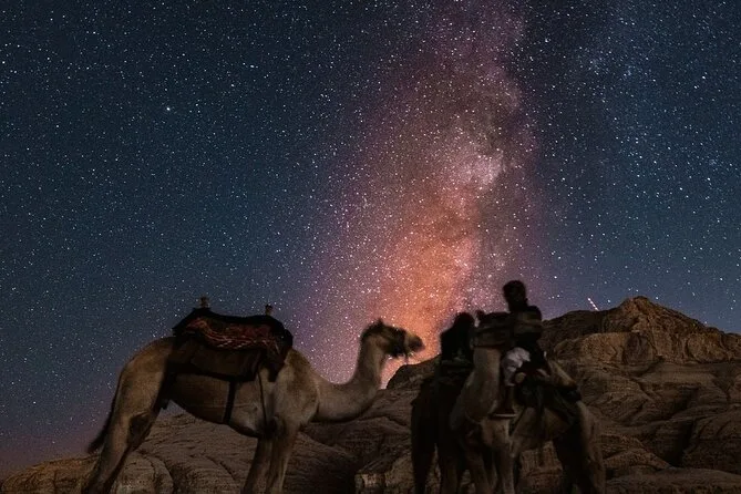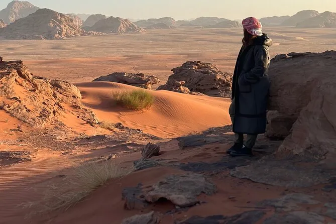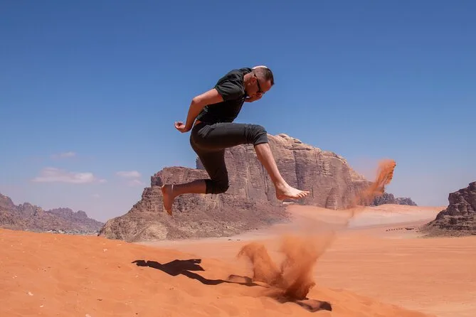 You’ll cross Wadi Rum’s wild landscape by jeep with a local guide, climb red dunes barefoot, share Bedouin tea at sunset, then sleep under desert stars in a private tent after home-cooked meals by the fire. If you’ve ever wanted to feel far away from everything familiar — this is that feeling.