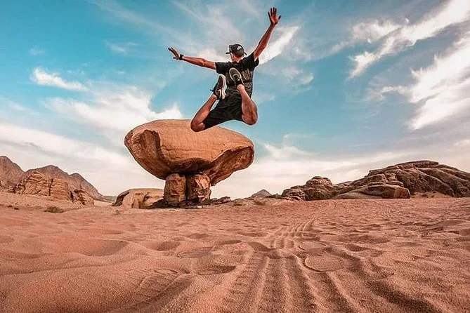 Jeep rides over red sand, bedouin tea at sunset, sleep under stars