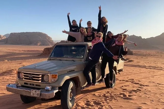 The jeep tour starts around 10:00 am from Wadi Rum Village Rest House.