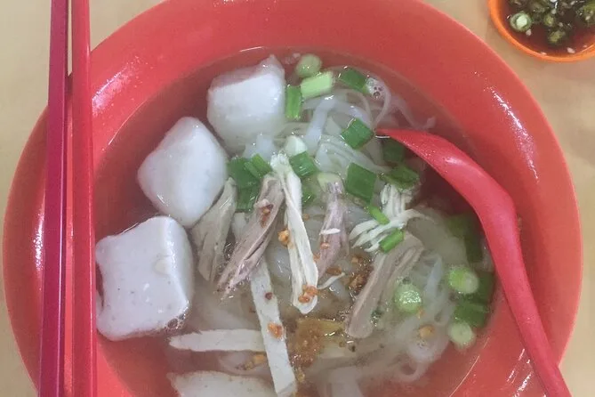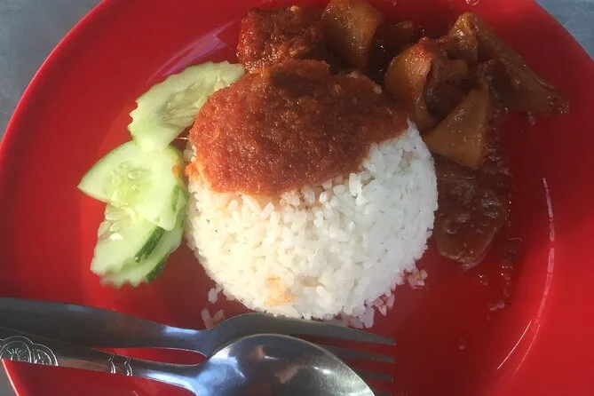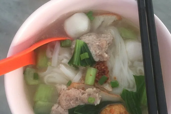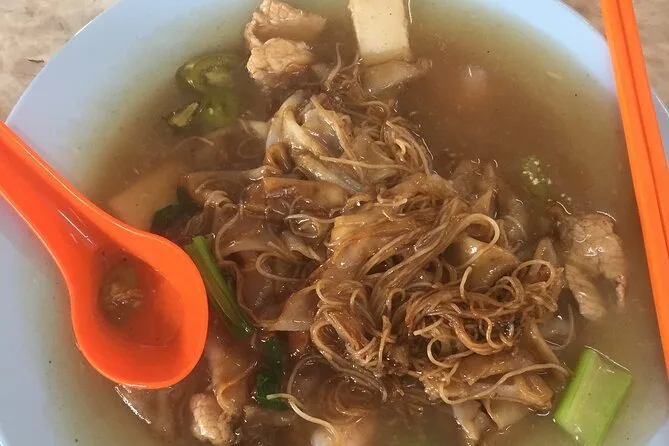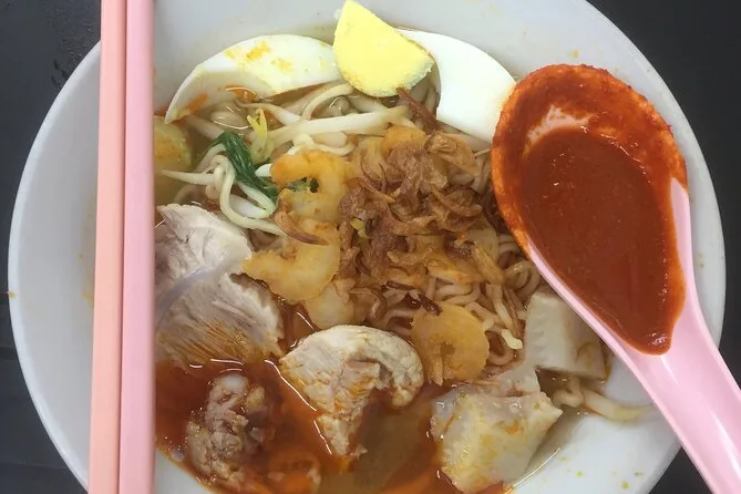 You’ll try dishes like Lor Bak, Wantan Mee, Assam Laksa, Char Koay Teow, Hokkien Mee, Curry Mee plus desserts and fruits if available.