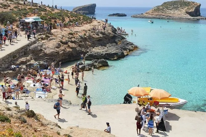 The caves around Comino were next — Ahrax cave looked like some secret pirate hideout, honestly. Everyone was snapping photos but I just watched the light flicker off the rocks for a bit; it was cooler in there, almost damp-smelling. There was this moment where someone tried to say “Elephant’s Head” in Maltese and Li (one of the crew) just burst out laughing — I probably would’ve butchered it too. The boat circled all these cliffs and weird rock shapes before we finally stopped at the Blue Lagoon itself.