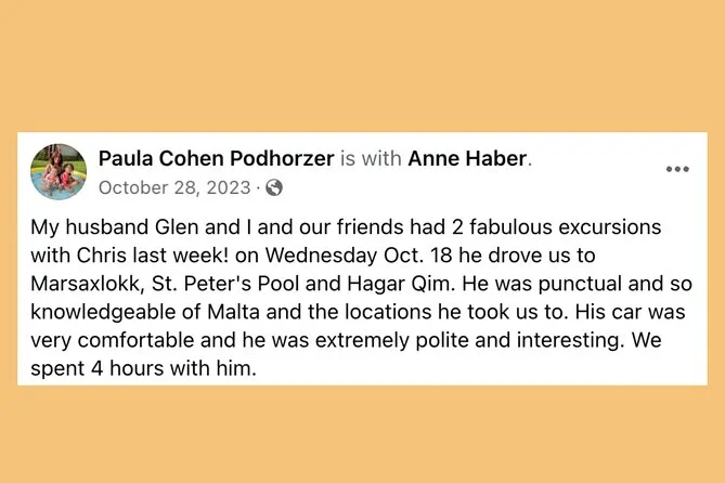Maltese vehicles are adapted for narrow roads; let them know your group size in advance to ensure comfort.