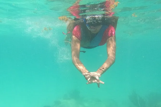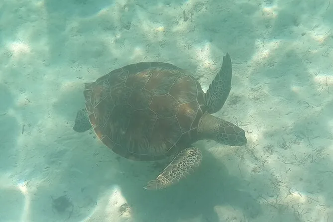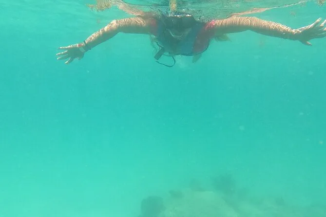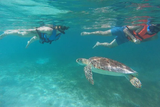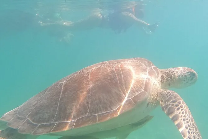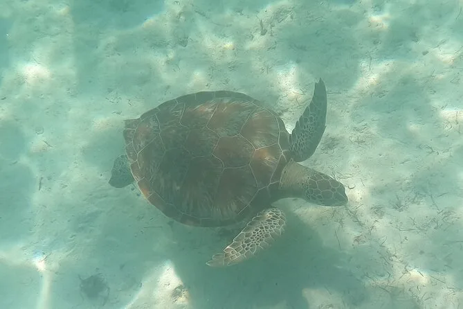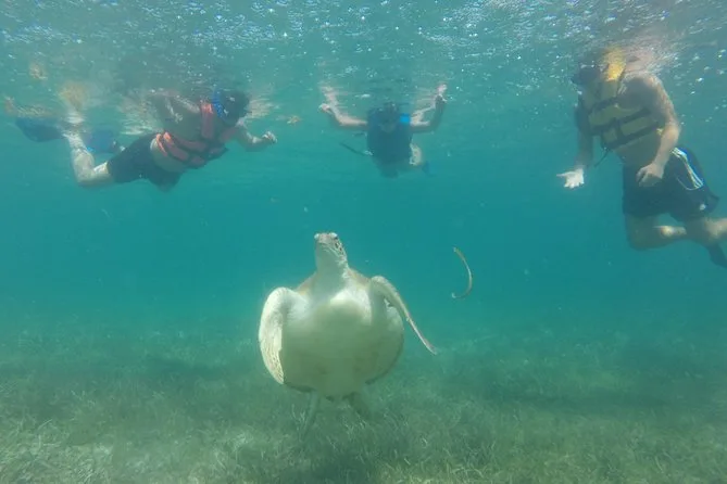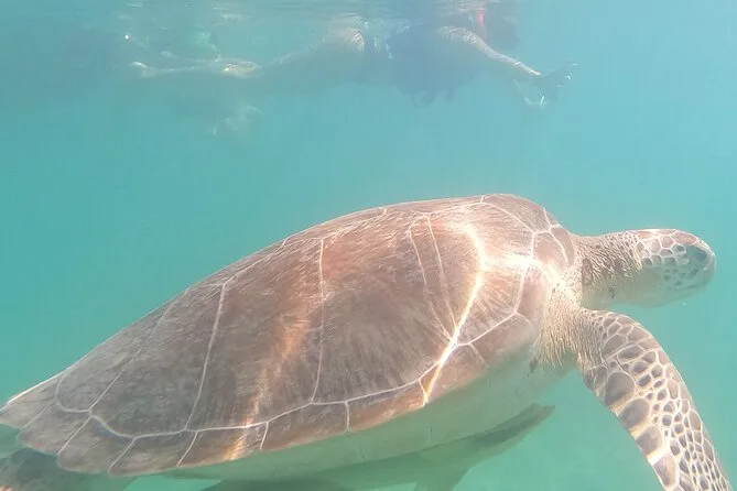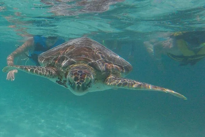 I didn’t expect how quiet it would feel once we dipped below the surface. Just muffled waves and my own breathing echoing back at me. Then—out of nowhere—a big green sea turtle glided past, totally unbothered by us drifting above. Miguel pointed out how they munch on seagrass right there in the shallow bay, about two meters deep. He reminded us not to reach out or chase them (which honestly felt right). There were a few other swimmers around but it never felt crowded—maybe because it’s a private tour and Miguel knows when to avoid busy times.