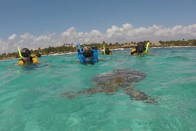 You’ll slip into Akumal Bay with a local guide and swim quietly among wild sea turtles—no touching, just observing them glide through seagrass beds. All snorkeling equipment is provided, plus lockers for your stuff and showers after. It’s peaceful, unrushed, and you might just leave thinking about those silent underwater glances long after.