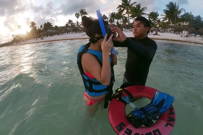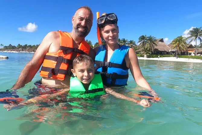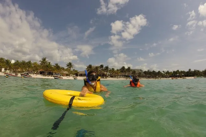 Your day includes entrance to Akumal Beach, all necessary snorkeling equipment (so you don’t need to bring your own), access to bathrooms and showers for freshening up afterwards, lockers for your belongings, plus all fees and taxes covered—and even specialized infant seats if you’re bringing little ones along.