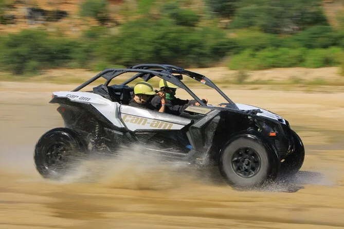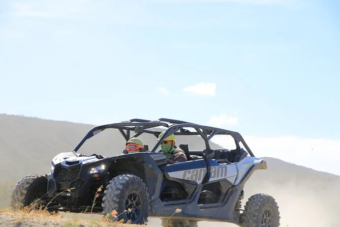 Your day includes private guiding from Real Baja Tours staff, shared roundtrip transportation from Cabo San Lucas by van, all safety equipment for off-roading in a Can-Am X3 turbo vehicle, plenty of purified water along the way—and wraps up with a free tequila tasting before heading back into town.
