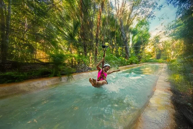 The zipline circuit was wild — ten of them, each one a little higher or longer. My friend tried to film me on the Aquazip but ended up catching mostly her own shrieking. There’s something about the way the sunlight comes down in stripes through the leaves that makes everything look kind of unreal. After all that adrenaline, dropping into the cenote was this weird relief — cold water shocking you back to earth, limestone rough under your toes. I floated for a minute just listening to everyone else splash around and thought, okay, this is why people come here.