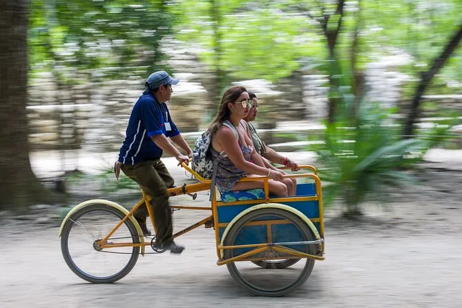 Next was Coba, which felt wilder somehow—more tangled jungle, less postcard-perfect. We wandered shaded paths under trees full of birds I couldn’t name. The climb up Nohoch Mul pyramid looked intimidating (42 meters is no joke), but I gave it a go anyway. My legs were shaking at the top but wow, that view over the treetops—still think about that one sometimes. On the way down, we took what Luis called “the Mayan limousine” (basically a tricycle taxi) back to where everyone else was waiting. It was bumpy and kind of hilarious—I nearly lost my water bottle twice.