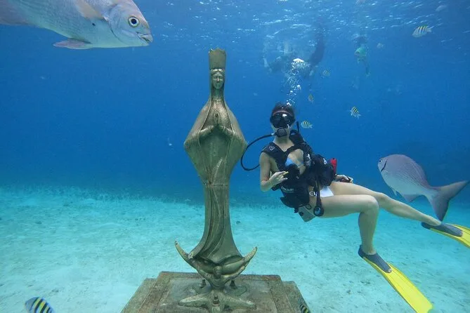 The dive happens at Chankanaab Adventure Beach Park in Cozumel.