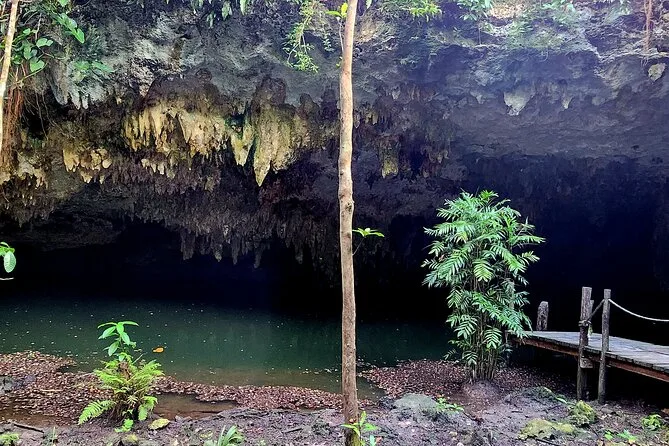 A swimsuit and towel are recommended for swimming in Cenote Jade’s fresh water.