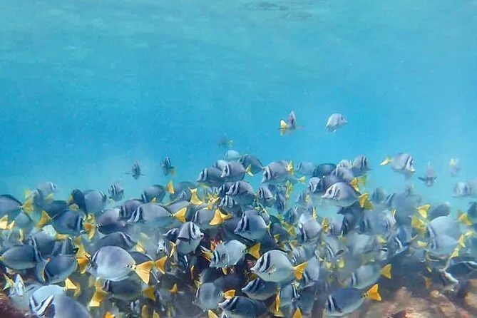 After that we cruised back toward the bays—Chachacual, La India… I lost track honestly because the coastline kept changing shape and color. We stopped at a reef where the water was so clear you could see every ripple of sand below. I’m not the strongest swimmer but they had snorkel vests for everyone (even me). There were these tiny yellow fish darting around coral that looked almost fake. Someone handed me a granola bar after and it tasted better than any snack should after swimming—I guess saltwater does that to you.